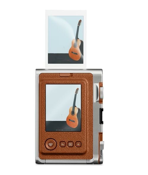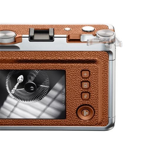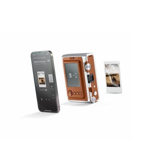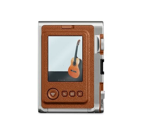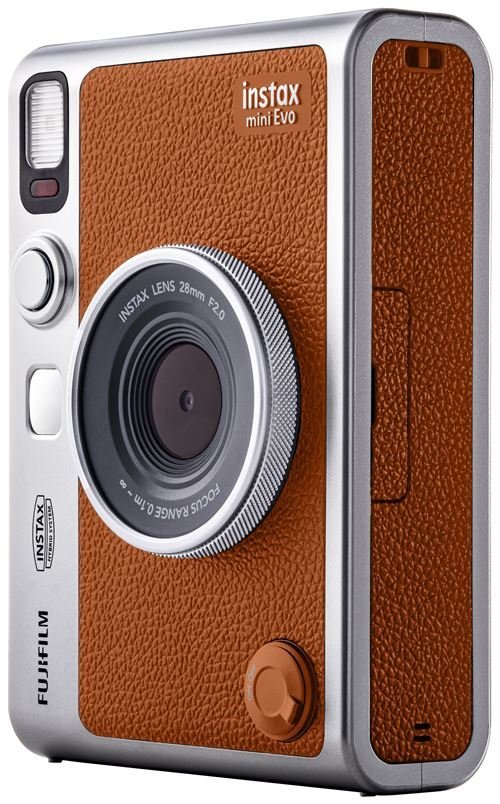 La Fujifilm Instax Mini Evo Marrón es una cámara instantánea híbrida que combina el encanto de la fotografía analógica