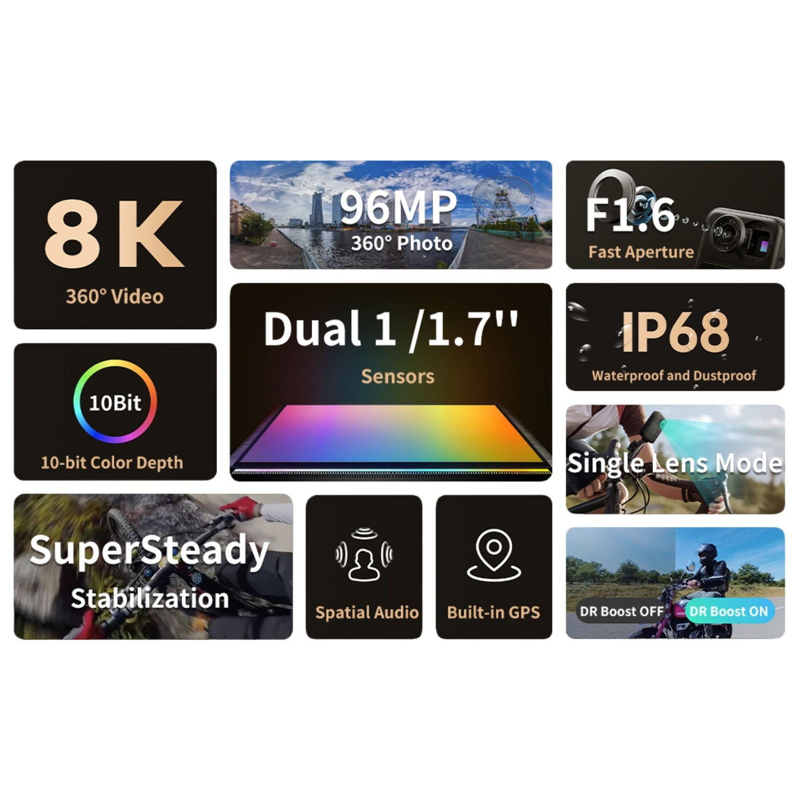 • Características: Cámara de acción, Vídeo en 360°, Pantalla táctil